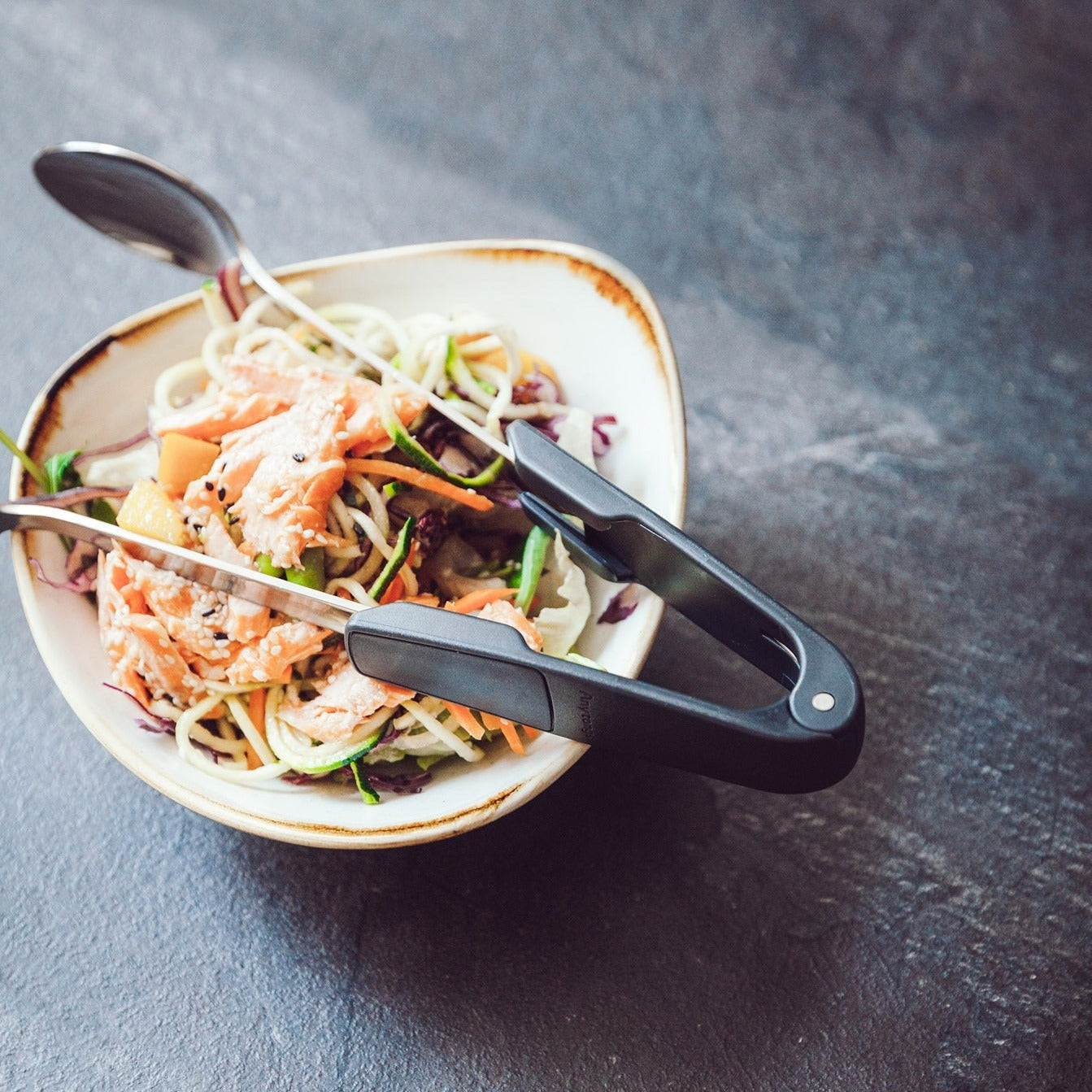 Anytongs is an ingenious kitchen tool that converts ordinary eating utensils into tongs, allowing for quick and hygienic food handling. With the simple switch of an eating utensil, you'll always have a clean tool handy. What's more, its lightweight design and compact size make storage and cleaning a breeze, while eliminating unnecessary bulk in the kitchen.